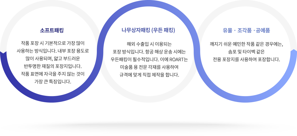 예술 작품의 고유 특성에 맞게 전문적인 방식으로 포장을 합니다.
